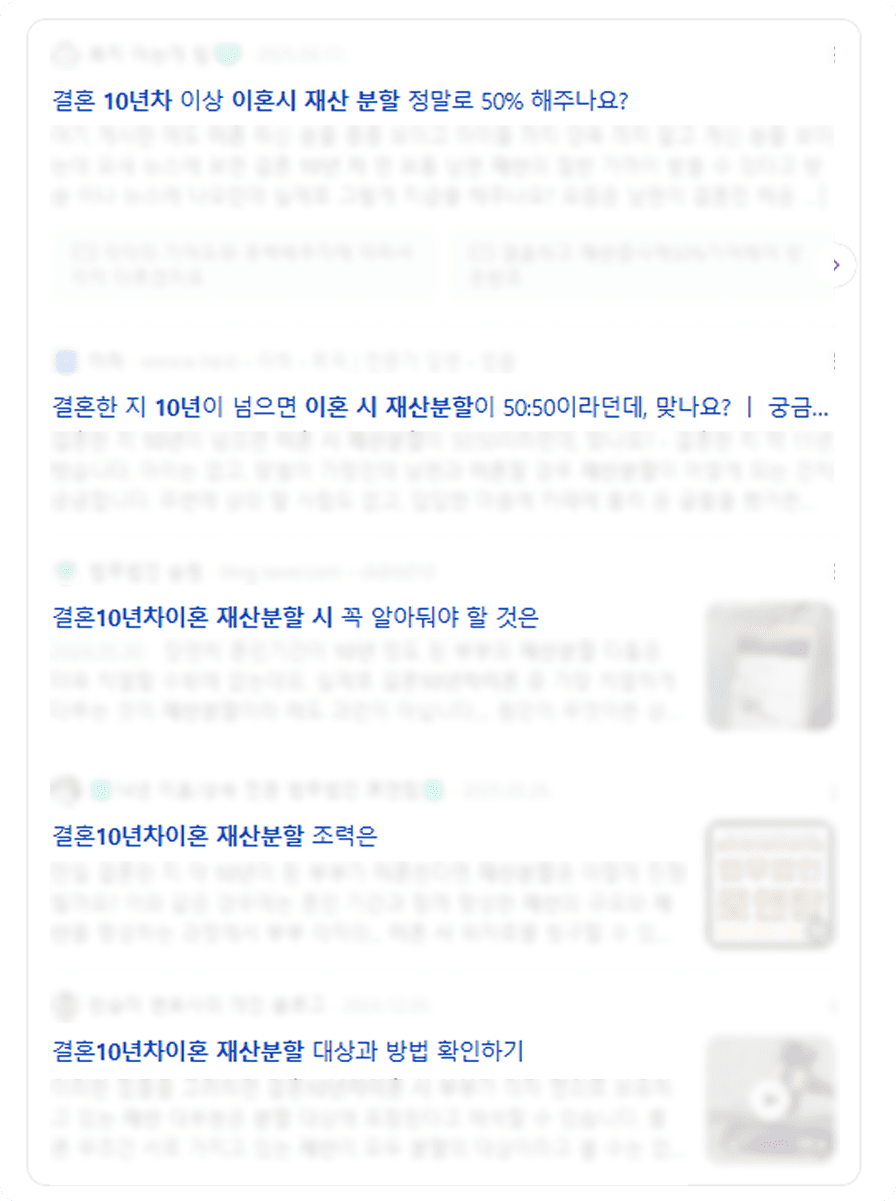 법무법인 콘텐츠 노출 검색 결과에 신뢰도 높은 콘텐츠가 노출됩니다.